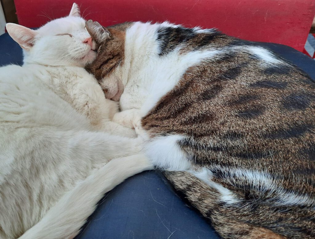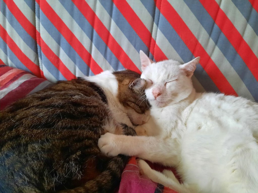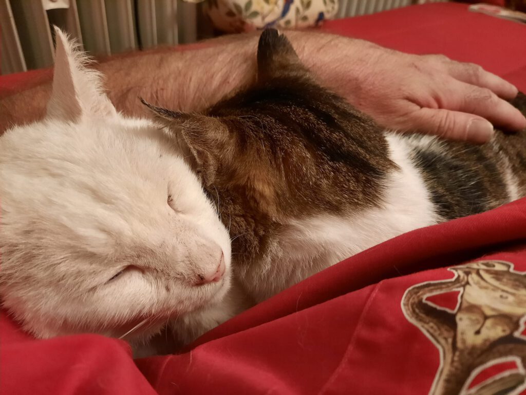 Auf der Dauer-Pflegestelle durfte er zum Dreibeinchen Humphrey einziehen, der auch FIV-positiv ist. Beide verstanden sich auf Anhieb prima, denn sie sind beide sehr sozial. So dürfen sie nun gemeinsam ein behütetes Leben in einem tollen und liebevollen Zuhause genießen. Er ist nun bei seinen Pflegeeltern in fürsorglicher Obhut, und die dortige Tierärztin betreut Beethoven kompetent. Also alles, was man überhaupt für ihn tun kann, wird nun liebevoll umgesetzt.
