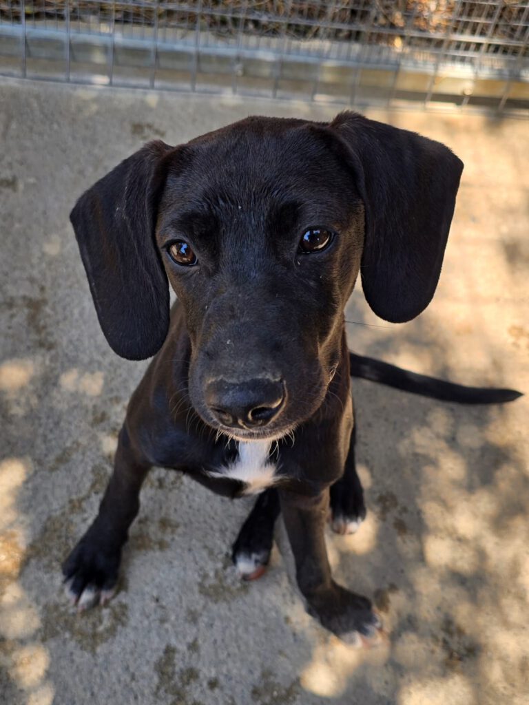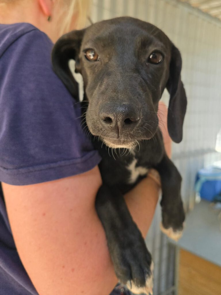 Lina ist eine im 03.2025 geborene, schwarze Mischlingshündin mit schwarzem Fell und weißen Abzeichen. Sie wird vermutlich mittelgroß werden. Sie ist aktuell noch zu jung für eine Kastration. Lina ist gechippt und geimpft.