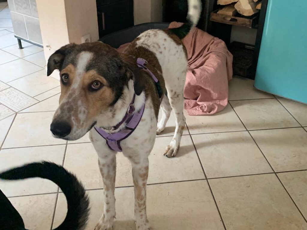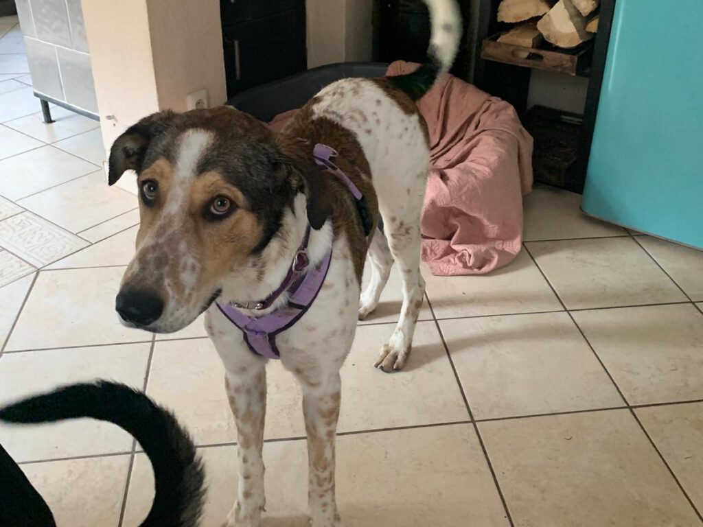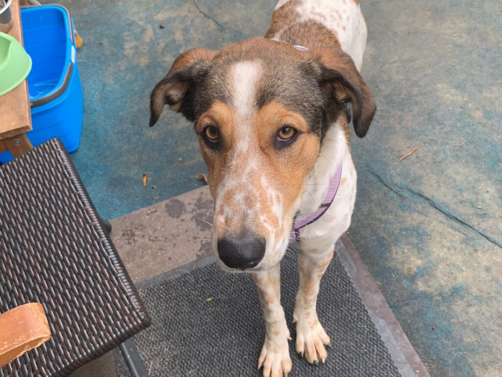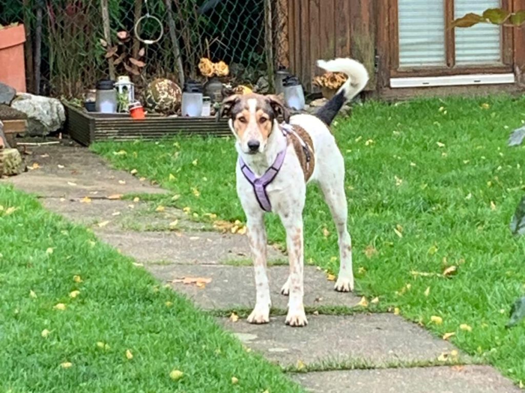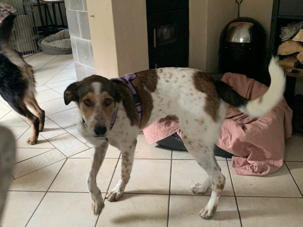 Suzy ist eine 12.2024 geborene, tolle Mischlingshündin mit weiß-braunem Fell und lustigen braunen Punkten auf der Nase und den Beinen. Sie hat aktuell eine Schulterhöhe von 55 cm, wiegt 18 kg und ist gechippt, geimpft und kastriert.