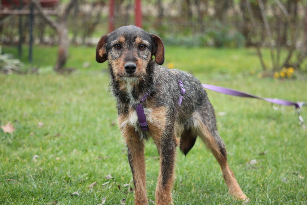 Bambina ist eine 02.2025 geborene, braun-schwarze Mischlingshündin mit weißen Abzeichen und wunderschönen Augen. Sie ist gechippt, geimpft und kastriert.