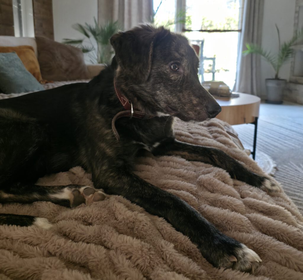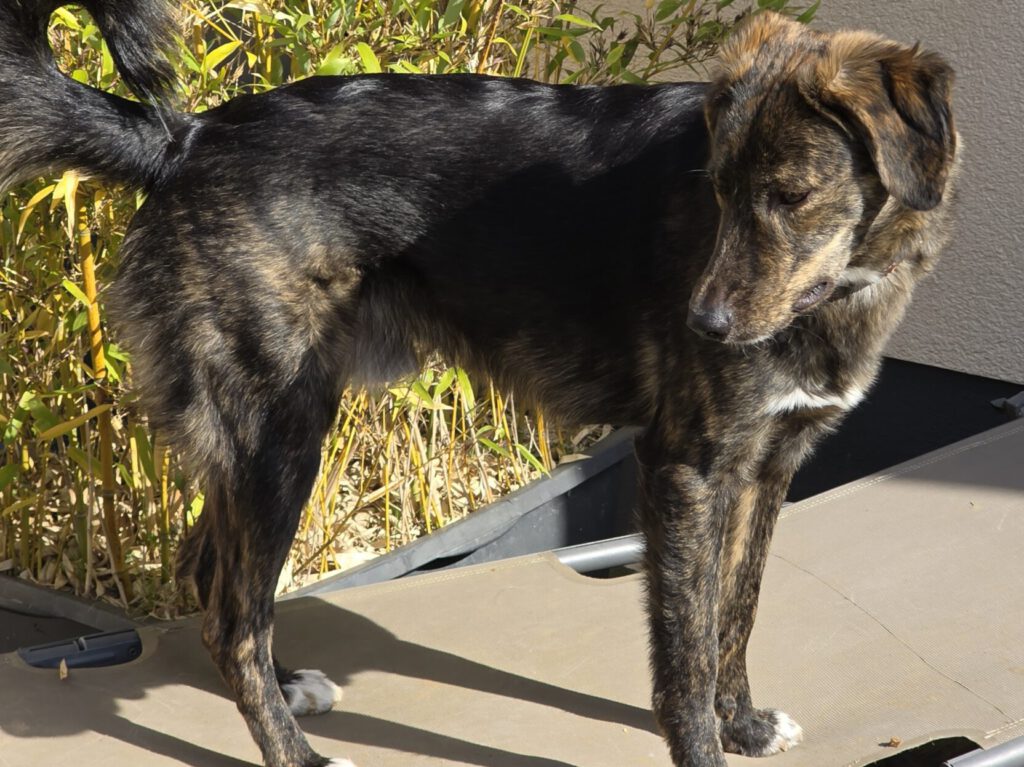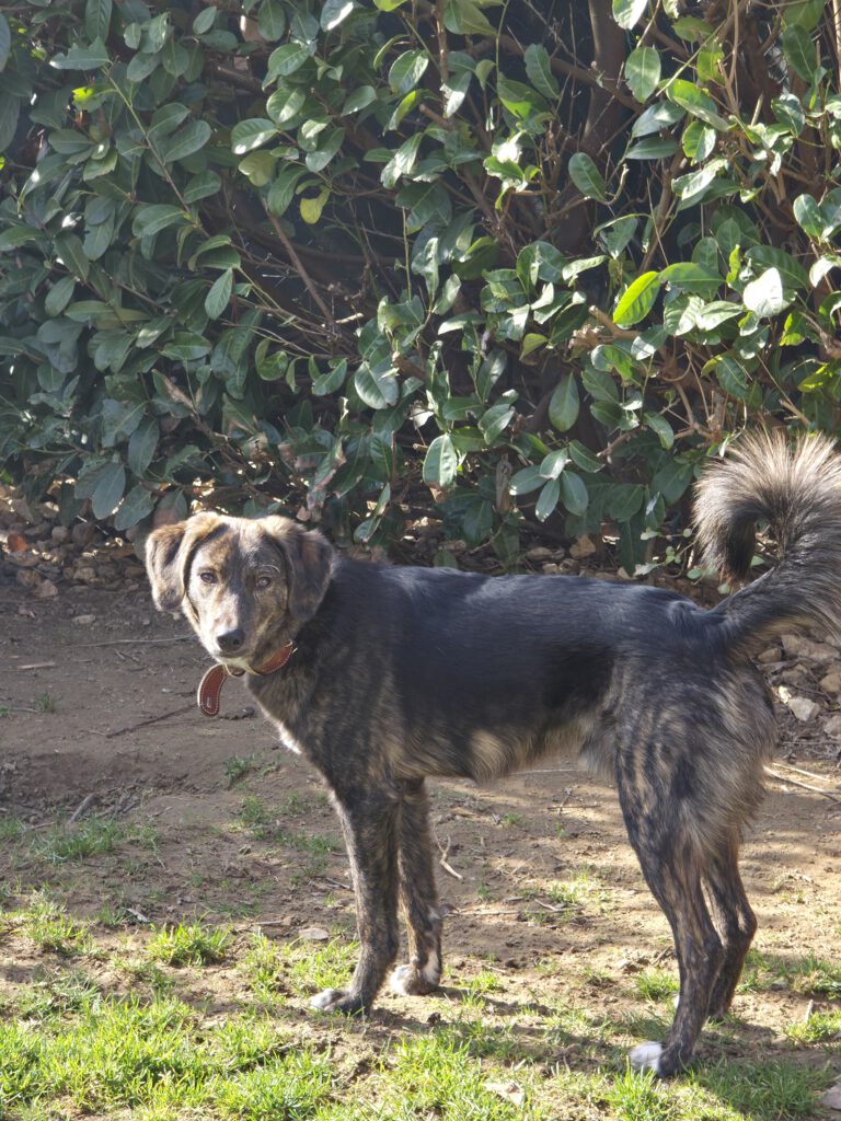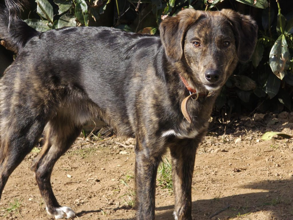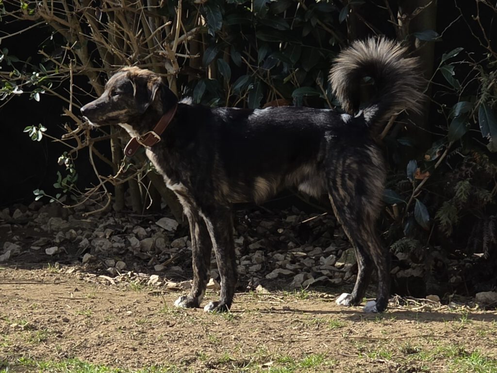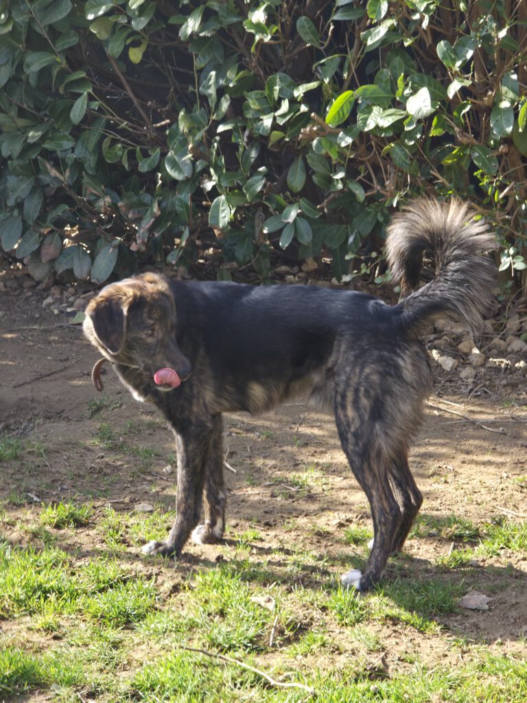 Heinrich ist ein 04.2025 geborener, bildschöner schwarz-braun gestromter Mischlingsrüde mit weißen Pfötchen. Er ist gechippt und geimpft.