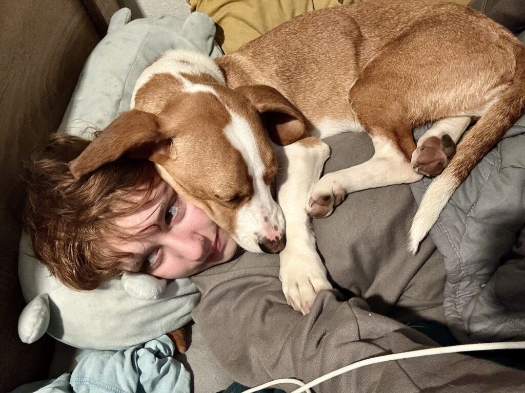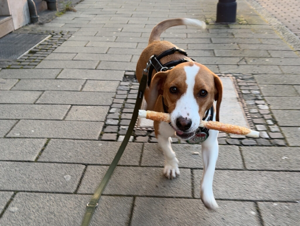 Naja auf jeden Fall nachdem wir dann noch Fotos gemacht haben und die so Sachen unterschreiben mussten (ich sag’s euch warten ist soooo langweilig), haben die mich dann auch schon eingepackt und in ein Auto gesteckt. Ich mag Auto fahren zwar immer noch nicht aber gut. Als wir ankamen habe ich erst mal Oma und Opa kennen gelernt, die sind echt super. Dann kamen wir in mein wirkliches Zuhause. Dort habe ich sogar zwei Mitbewohner, die sind kleiner als ich und schnurren manchmal. Aber mich fauchen die auch oft an:( Ich kann überhaupt nicht verstehen warum, Papa sagt ich bin zu wild für die, aber ich würde dich so gerne mit ihnen spielen oder kuscheln. Mit der Zeit habe ich mich echt gut eingelebt hier, ich kann sogar schon ein paar Tricks. Die Leine ist okay, außer sie hält mich davon ab Mäuse zu jagen. In meinen ersten Wochen waren wir außerdem bei Fressnapf und ich durfte mit so coole Sachen aussuchen. Meine Lieblings Aktivitäten sind auf der Hundewiese und im Garten rumrennen, Essen, kuscheln und meinen Papa auf die Palme bringen: Draußen würde ich am liebsten allen hallo sagen aber das darf ich nicht. Ich bin eben ein kleines Bündel mit Lernstand Welpe und voll in der Pubertät. Ich habe zwar denn Namen Jane bekommen, aber irgendwie nennen mich nicht alle so, die nennen das Spitzname obwohl die garnicht kürzer sind als mein Name. Mein Papa Jamie nennt mich ganz oft einfach Maus, er sagt wenn ich frustriert bin quietsche ich wie eine. Die Mama von Jamie, ich nenne sie einfach auch Mama (ich weiß, ich weiß verwirrend) nennt mich immer aufgedrehte Nudel, weil ich immer so aufgedreht hin und her wackele. Meine Oma und Opa (Jamies Oma und Opa) nennen mich ganz oft Jamie und Jamie dafür Jane haha. Ich durfte sogar letztens unseren Tierarzt kennen lernen und der war viel netter als die Katzen gesagt haben, ich habe richtig viele Leckerbissen bekommen .