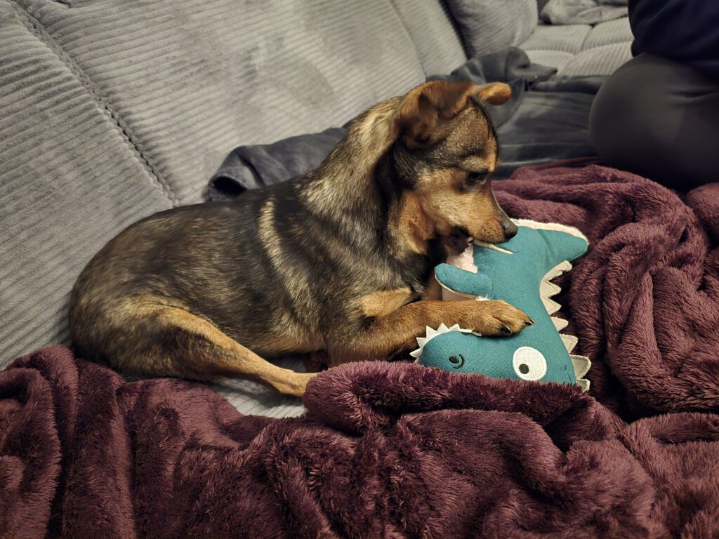 Zu Hause genießt sie ihr neues Leben in vollen Zügen. Streicheleinheiten? Am liebsten ganz viele! Nähe? Unbedingt! Ryla ist unglaublich menschenbezogen, sucht die Nähe ihrer Familie und zeigt auf ihre ganz eigene Art, wie dankbar sie ist. Sie schläft am liebsten mit im Bett oder kuschelt sich auf die Couch – Hauptsache, sie ist dabei. Mit ein paar Leckerlis kann man ihr Herz zusätzlich erobern, wobei sie eigentlich schon längst alle Herzen im Sturm gewonnen hat.