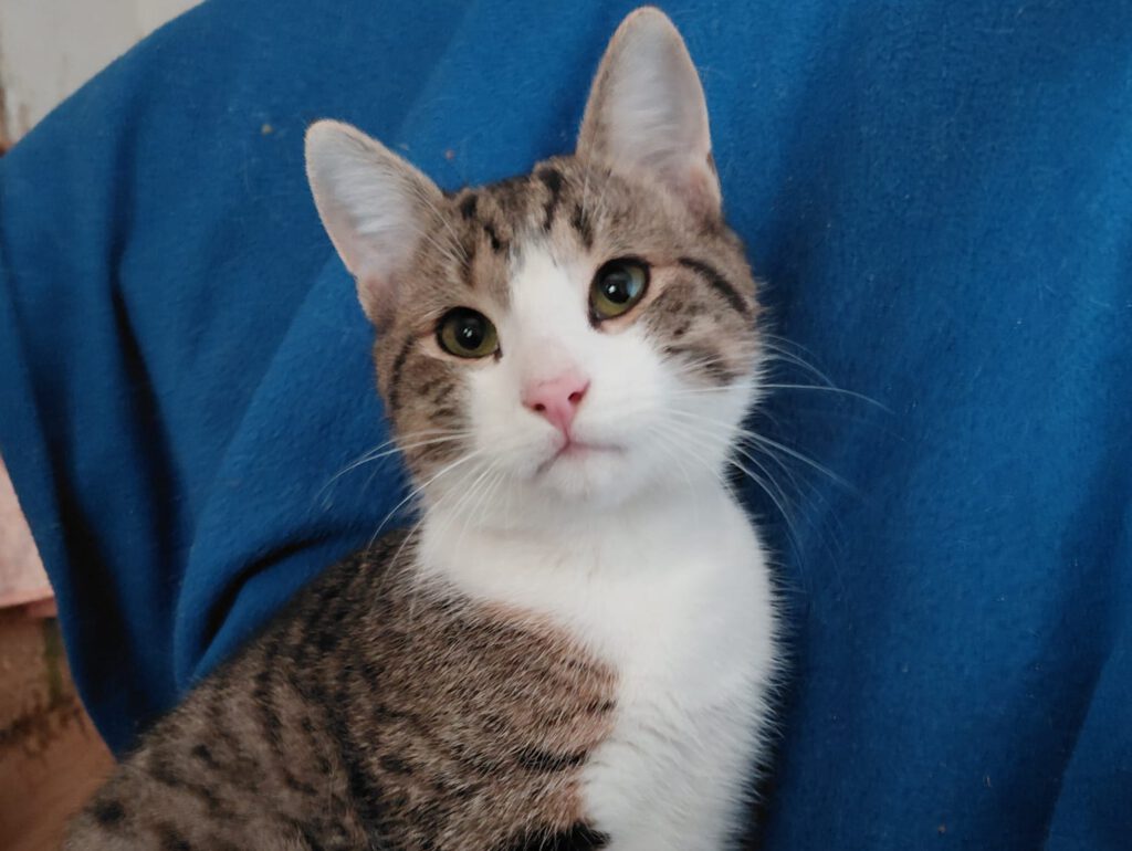 Leon wurde zusammen mit seiner Schwester als kleines Kitten und erst ein paar Tage alt vor einem Katzenunterschlupf unseres Partnervereins vor Ort ausgesetzt, den sie dort betreiben und versorgen. Er war lange bei ihnen in ihrer Auffangstation und ist einer der liebsten Katerchen aus dem vergangenen Sommer. Er ist ruhig, sanft und sehr verschmust und so wollen wir ihm nun die Chance auf sein großes Los geben – eine eigene ihn liebende Familie, in der es ihm an nichts fehlen wird.