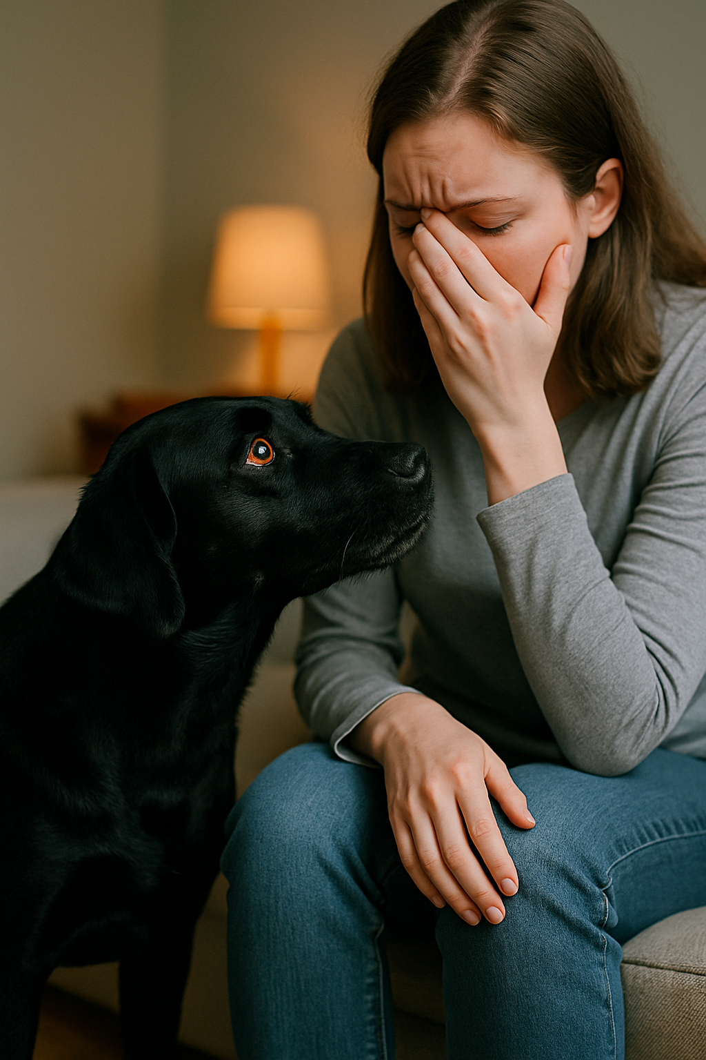 Das Lustige: Für Hunde riecht Angst nicht „gruselig“, sondern eher wie eine Mischung aus Aufregung und „Achtung, hier passiert was!“. Viele Hunde reagieren dann wie ein sehr zugewandter, haariger Therapeut: Sie kommen näher, werden vorsichtig, stupsen uns an oder kleben plötzlich wie ein Magnet an unserem Bein.