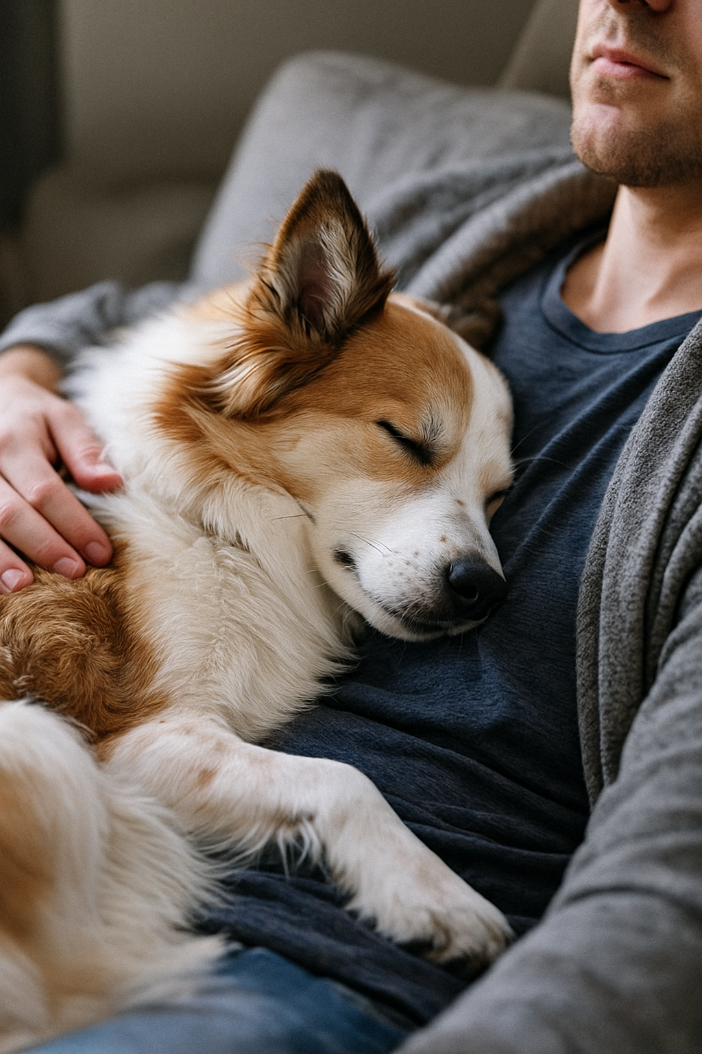 Das Lustige: Viele Menschen denken, der Hund wäre einfach „ruhig“, weil er schläft. In Wahrheit liegt er manchmal nur neben uns und macht ein stilles Bio-Update: „Okay, mein Mensch atmet gerade tief durch… ich auch.“