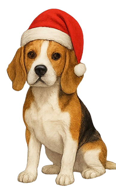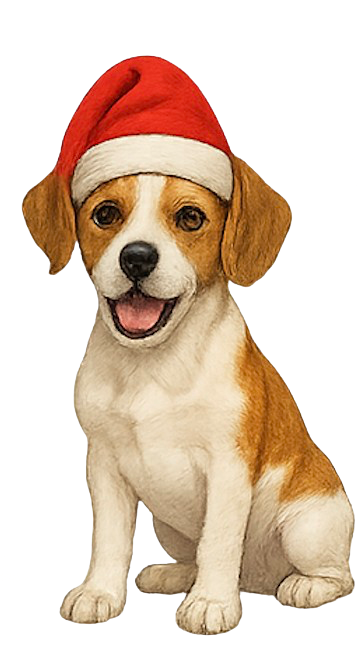 – über 100 €: ein dankbarer Hund mit Weihnachtsmütze